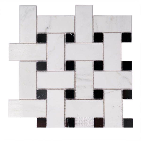 Basketweave 2x4 O White w/ Black Dot